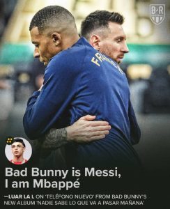 Luar La L raps this verse in the song about longing for the past and being disgruntled with the music industry. If Bad Bunny is the GOAT Messi in the industry, then he is the Mbappé wonderkind.