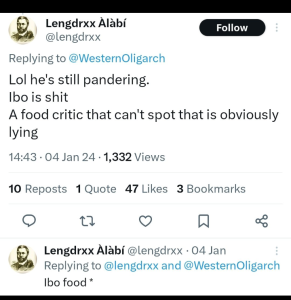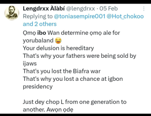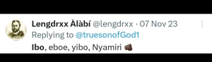 Lengdrxx Alabi l, a Yoruba man who posted regularly on X always enjoyed trolling Igbo people on X as part of the Yoruba-Igbo Ethnic wars going on on X. See some of his tribalistic posts below.
