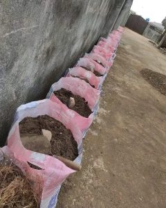 Step 4 – You either bury the yam heads or Cut your yam into small sizes, rub the ash on the piece, then bury deep in the sack filled with soil.